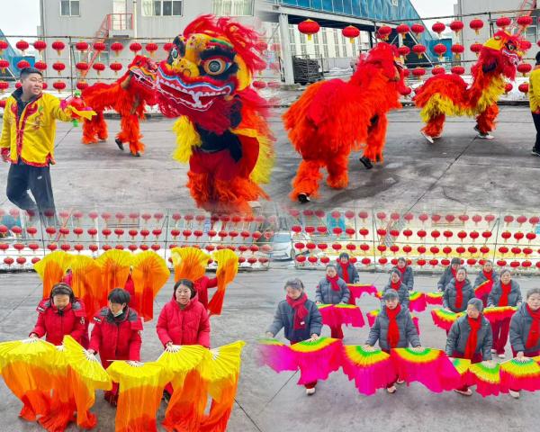 活动现场,大红灯笼沿矿区主干道错落悬挂,五彩福字装点各处,处处洋溢着团圆喜庆的节日氛围。各村代表队依次登台献艺,表演者们身着鲜艳的传统服饰,精神抖擞、神采飞扬,将地道的民俗风情与真挚的节日祝福融入每一个表演。威风凛凛的醒狮时而腾挪跳跃,时而摇头摆尾,动作矫健、神态逼真,将传统民俗的魅力展现得淋漓尽致;秧歌队手持彩扇、红绸,踏着整齐的步伐,扭出了对美好生活的向往,也扭出了企地一家亲的深厚情谊;舞蹈队的姑娘们舞姿灵动,彩扇翻飞,用热情洋溢的表演,为节日增添了浓浓的喜庆氛围。