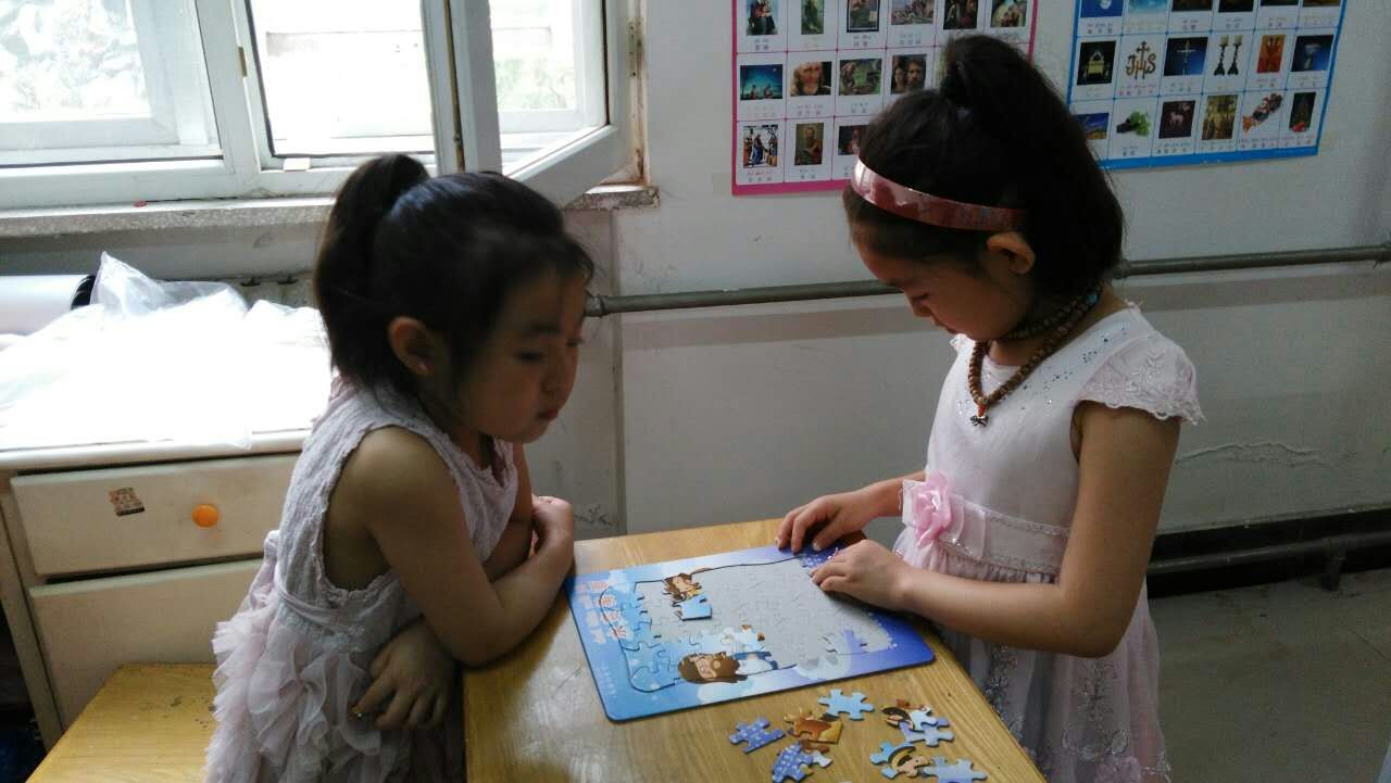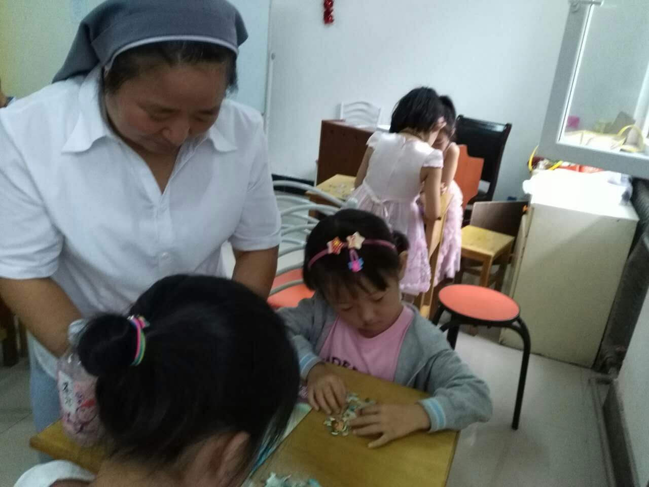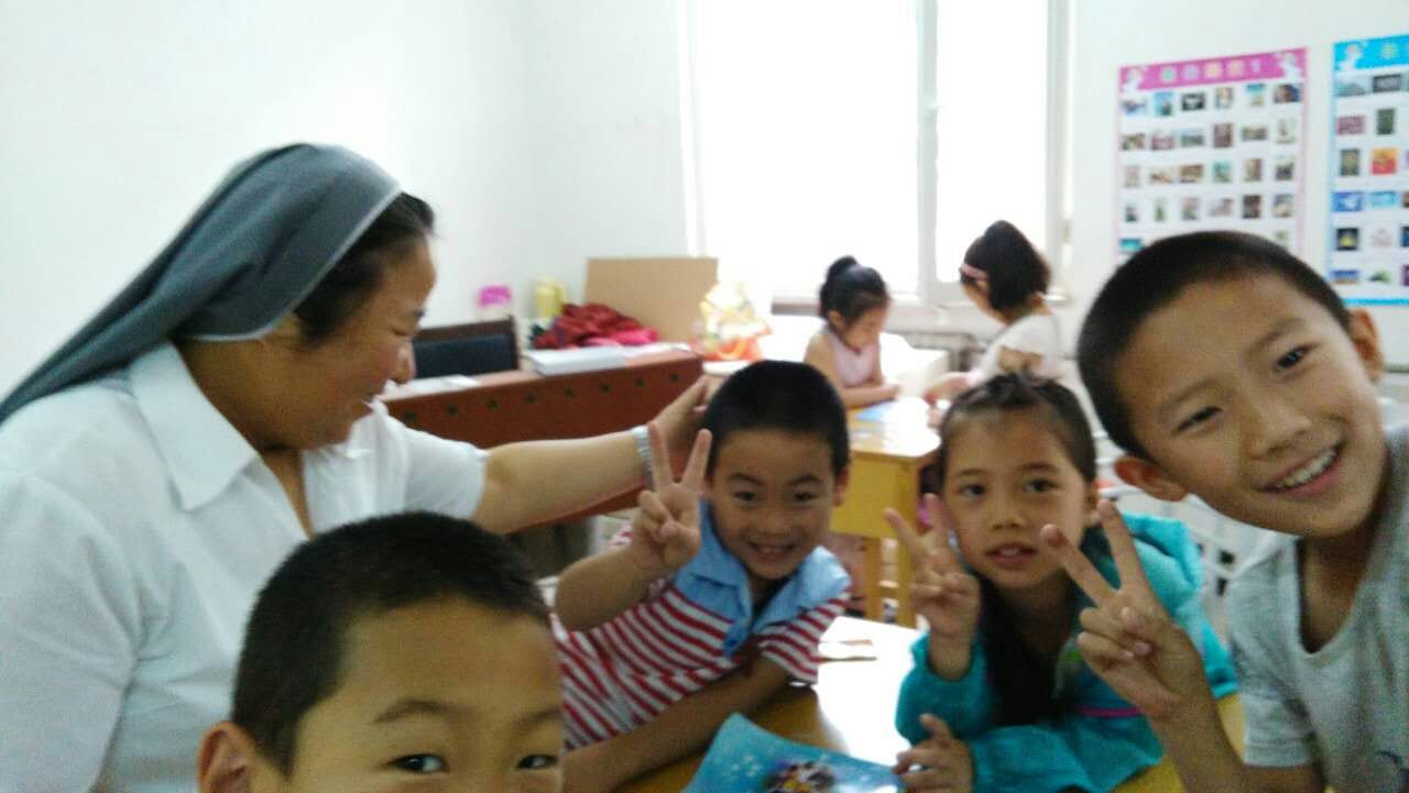 学习期间,修女及李桂英、崔灵芝教友一直陪伴着孩子们。课间李修女陪孩子们玩游戏,芳佳修女顶着烈日为孩子们买吃的,大家在一起相处的十分融洽,孩子们似乎沉浸在了快乐的海洋里,慢慢享受着这属于他们的美好童年,并且还懂得了彼此分享,感受到在主的大家庭内那份亲情。这次学习得到了家长的好评。