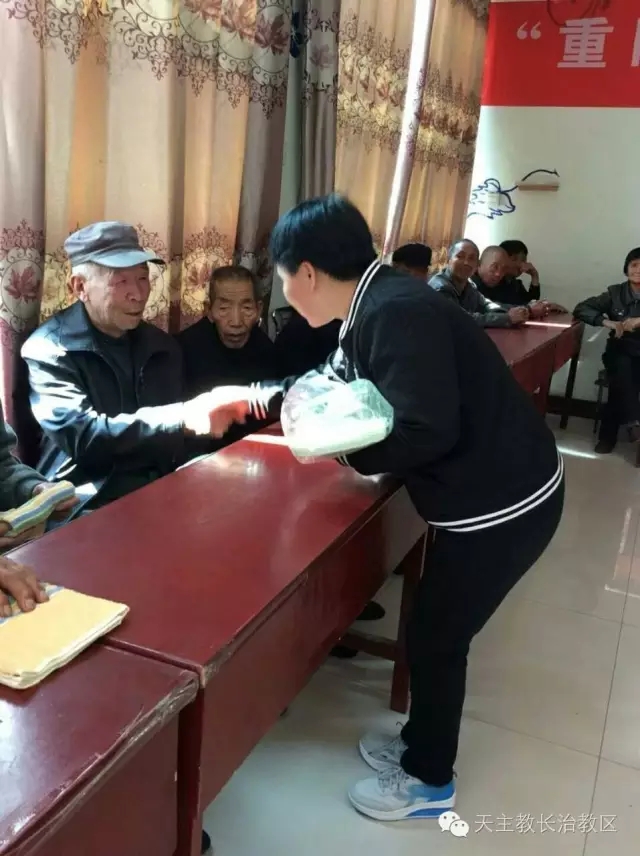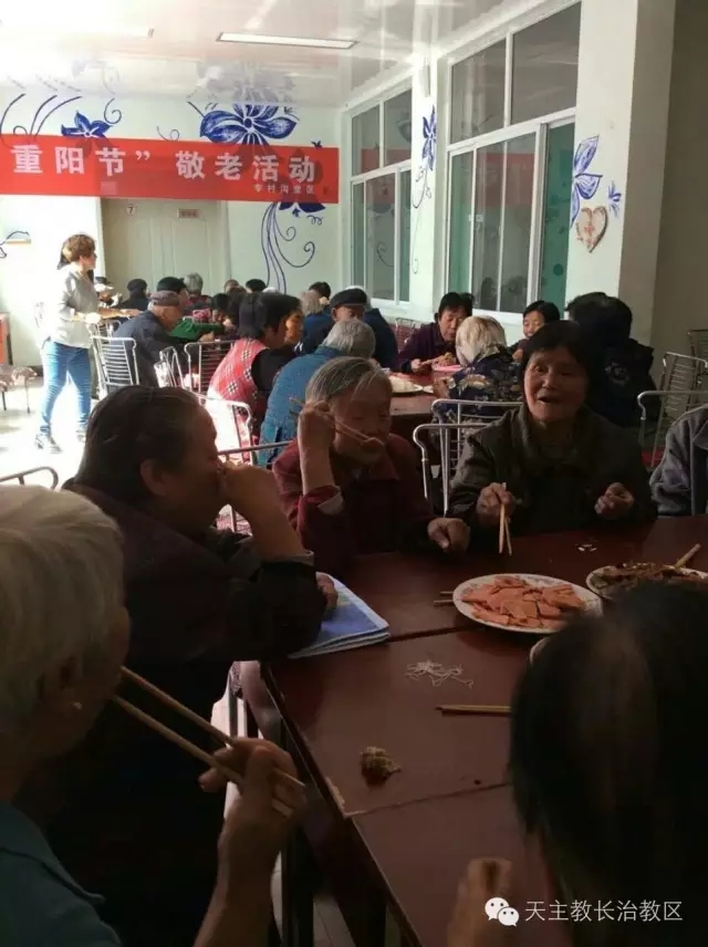 时值重阳节,李村沟堂区堂院内人声攒动,义工们在李景芳神父的带头下,为堂区老人祝贺节日。神父为老人们奉献了弥撒,组织小朋友们为爷爷奶奶准备了节目,并为大家准备了可口的饭菜,还不忘为老人们赠送礼物,其乐融融的度过了开心的一天。