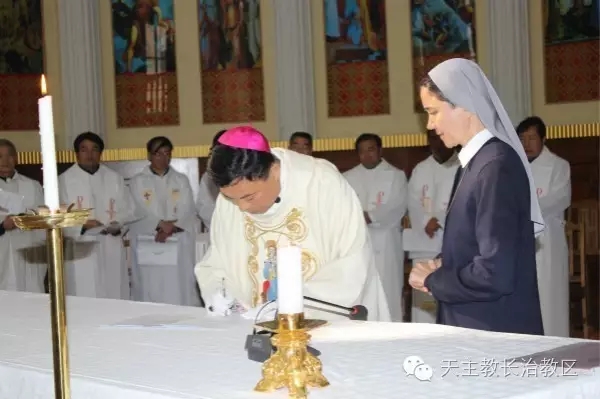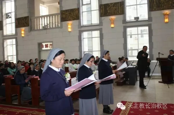 11月15日上午10时,圣母升天奉献传教女修会韩丽琴、程路峰、徐翠彦三位修女在长治教区主教座堂,宣发终身誓愿。