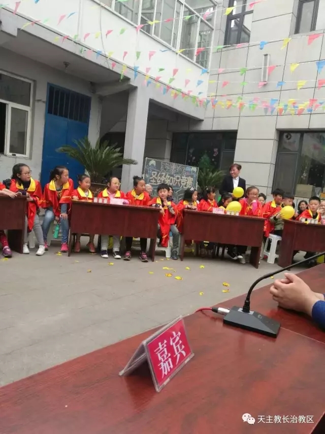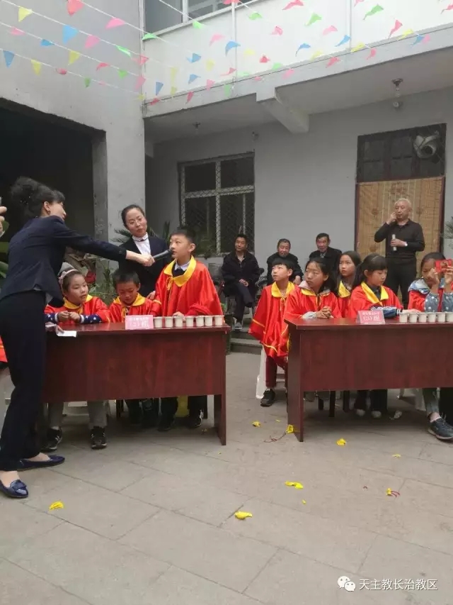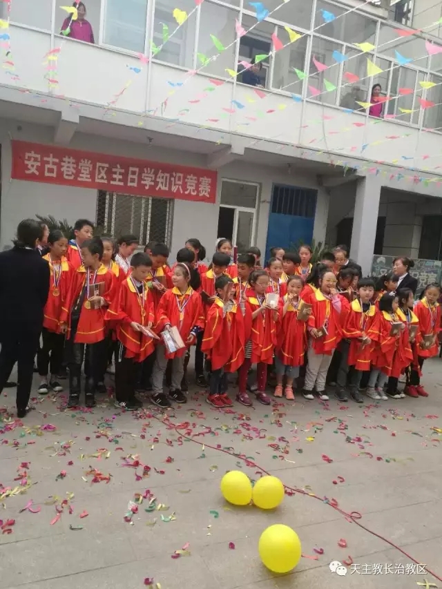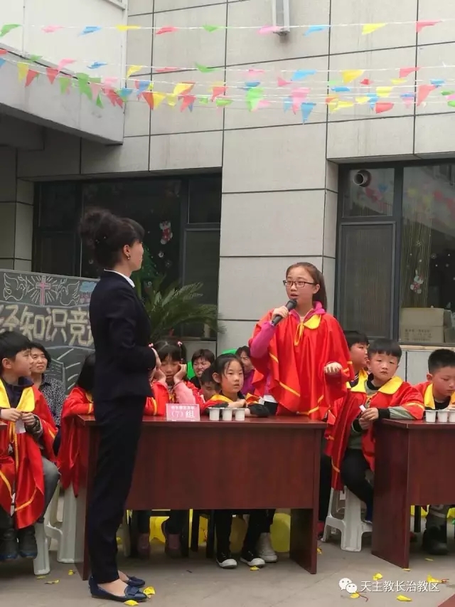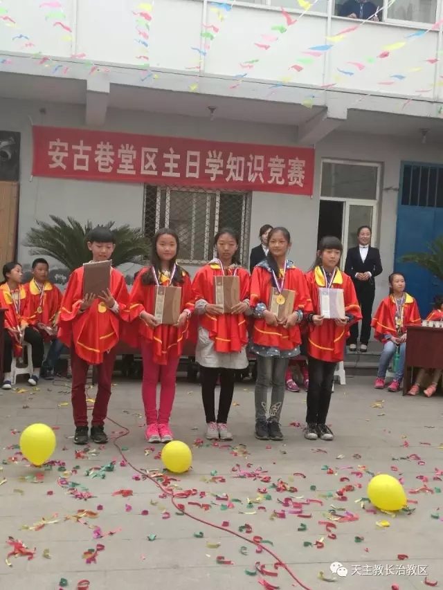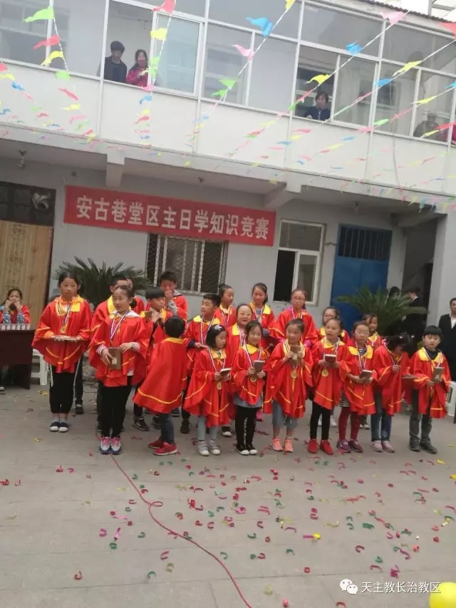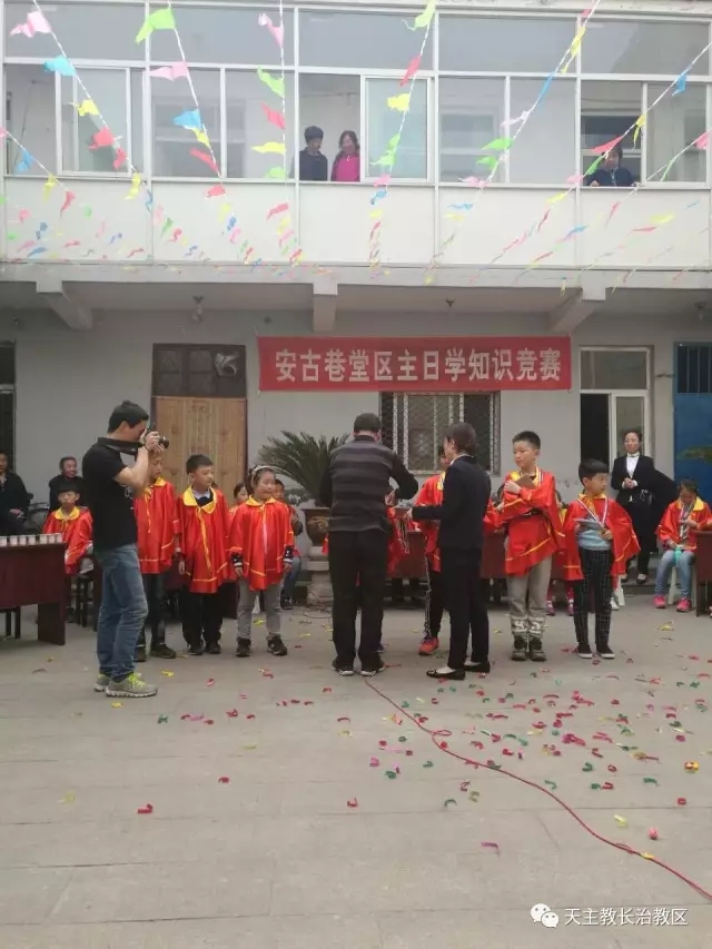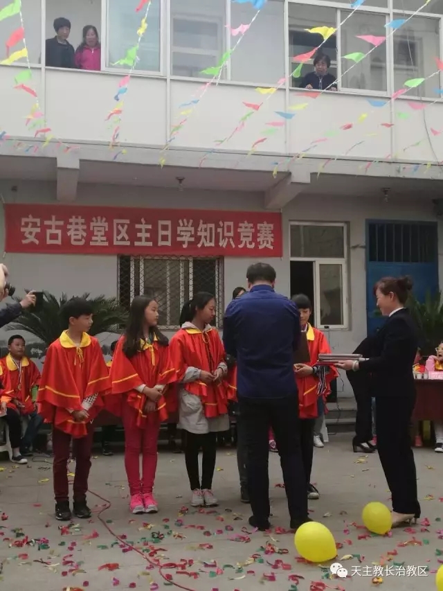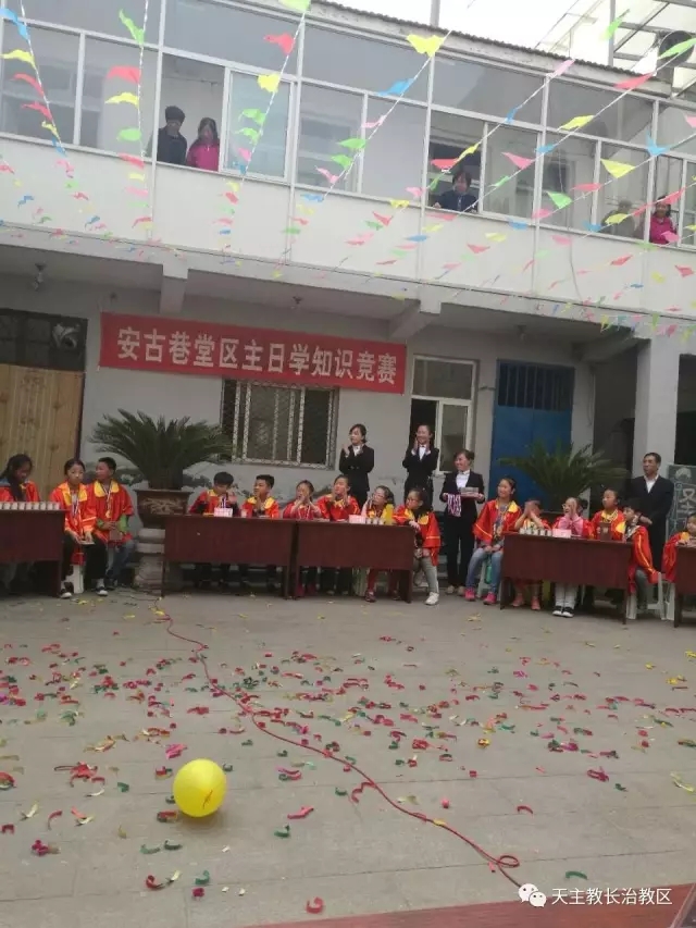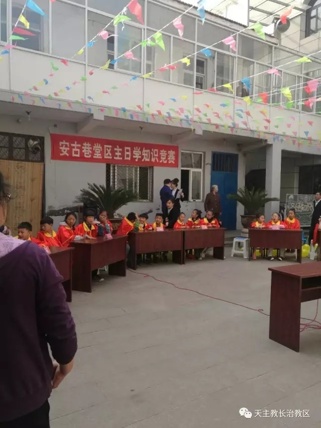 2017年4月30日下午四点,长治教区安古巷堂区举办了"安古巷堂区主日学第一届圣经知识竞赛"活动。整个活动中,小选手们个个胸有成竹,积极回答老师提出的问题,抢答题更是争先恐后,气氛非常活跃。从答题情况可以看出,参加主日学的孩子们,通过一年的学习,取得了不小的成绩,堂区给他们创造了一个健康、积极的学习环境,使他们在这样良好的环境中,学到了很多教会知识以及做人的道理,使孩子们不但在信仰上得到了成长,而且也塑造了他们健康的人格,同时也通过对孩子们的培养,将我们的信仰传承下去。