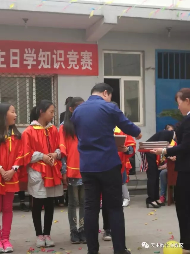 最后,本堂马神父给获奖小选手颁发了奖品,并对本次活动做了总结发言,对主日学工作给予肯定,要求家长积极配合,鼓励孩子们继续努力。