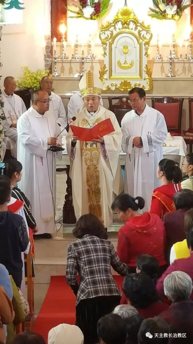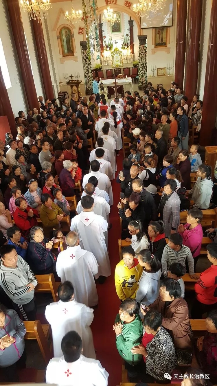8:30开始弥撒,由丁主教主祭和十二位神父共祭。