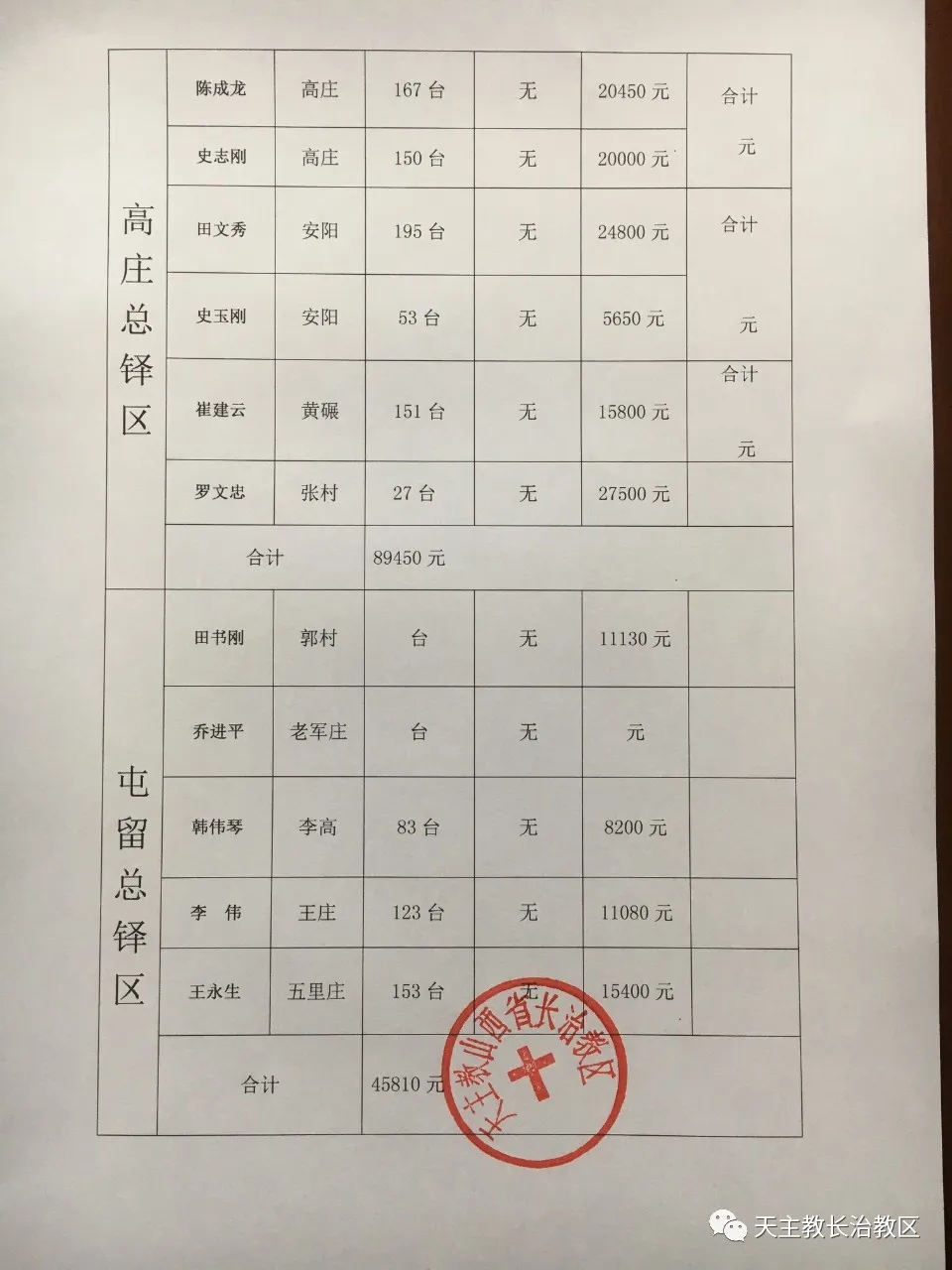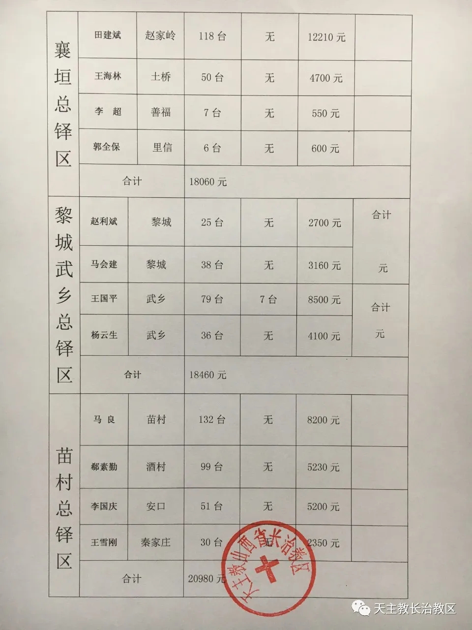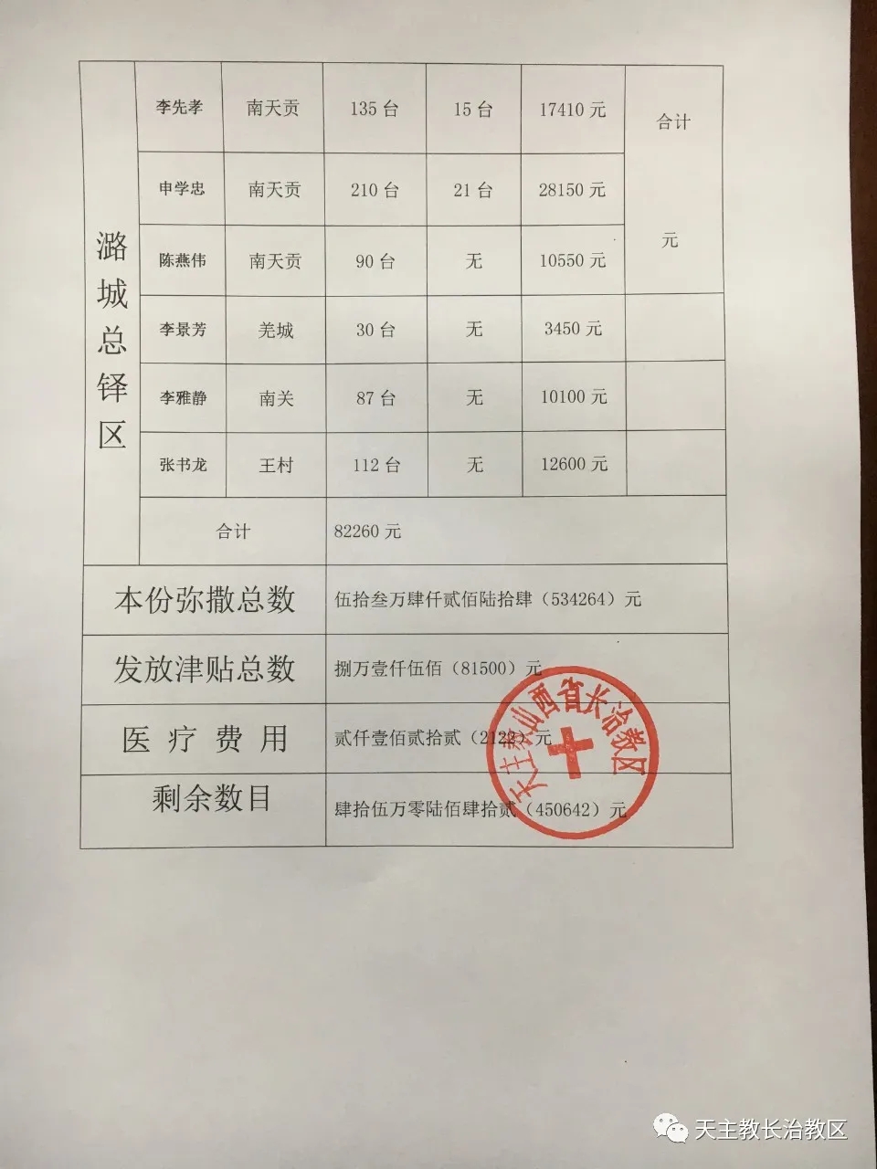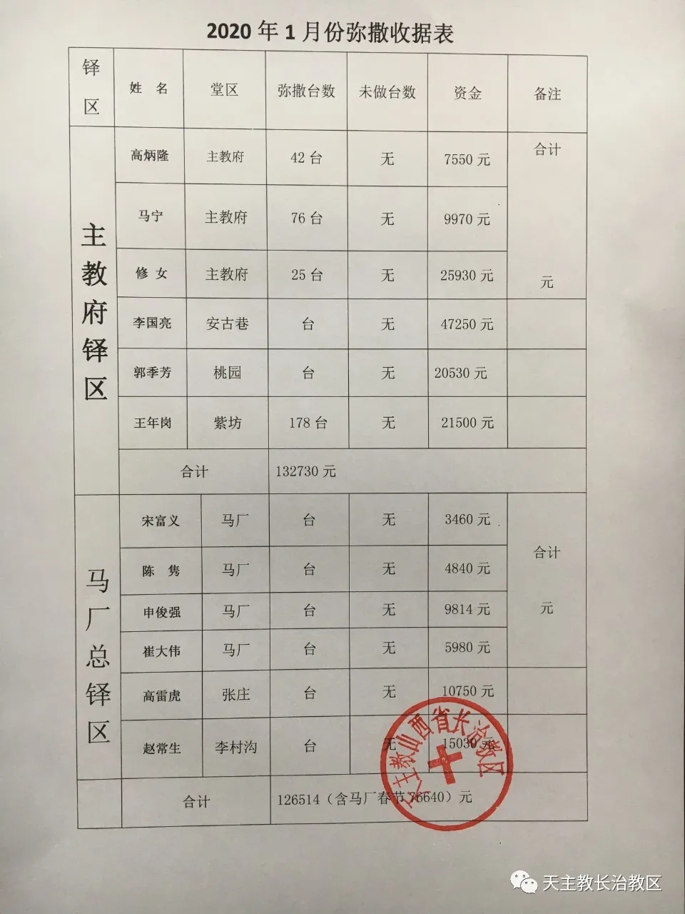 【教区动态】长治教区二0二0年一月份弥撒献仪汇报