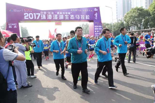 山西省体育局副局长杜荣,长治市委常委、宣传部长孙刘琳,长治市人大副主任、市总工会主席崔建泰,市政府副市长景普秋,市政协副主席杨江波,市政府副秘书长闫志强,市人大常委、中诺百佳集团董事长孟保东等领导出席大赛并为选手领跑。