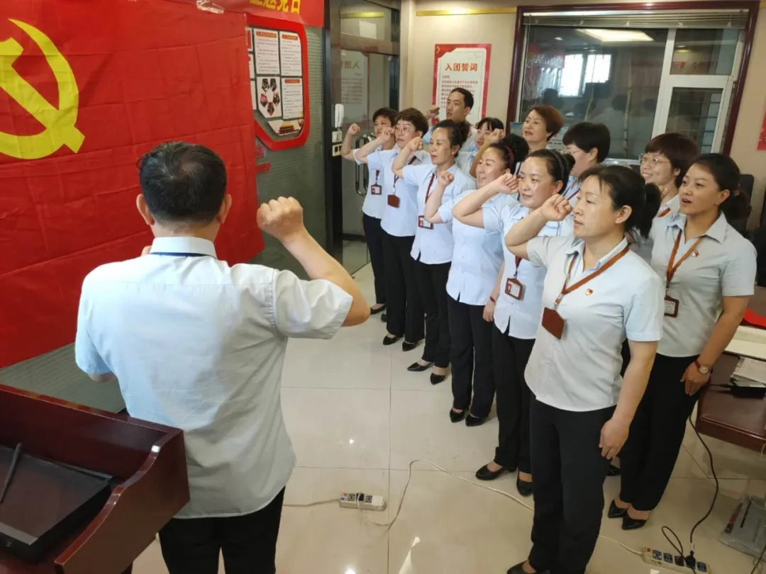在本次“主题党日”中,进行六项会议议程,全体党员重温“入党誓词”。